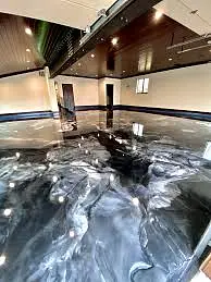 Interior concrete, basement, & garage floor applications. Options include: solid color, flake, & metallic coating.